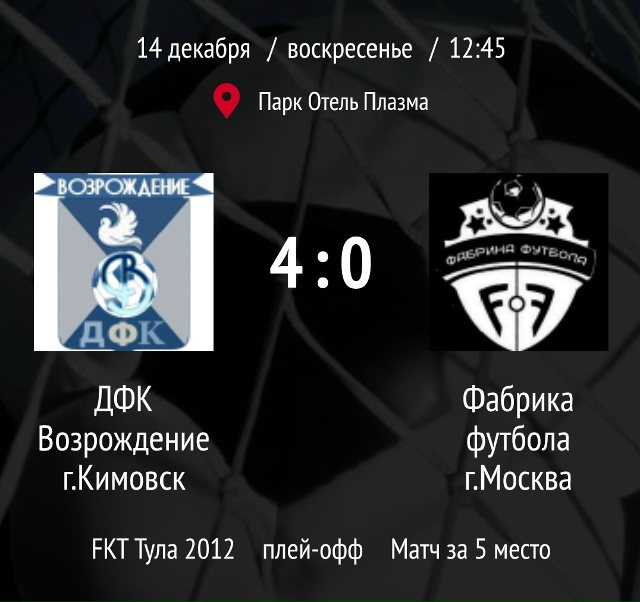 Детская футбольная команда «Возрождение» (секция «Футбол» МУ «Стадион») в течение трех дней провела пять матчей на этом турнире. Кимовчане показали достойный футбол, вышли из группы, но в четвертьфинале, к сожалению, уступили чебоксарской команде «БОКС» в серии пенальти. Это поражение лишило кимовчан права бороться за четвёрку сильнейших, но оставались шансы на серебряный кубок - это борьба за места с 5 по 8. Напомним, что в турнире участвовало 13 команд из различных уголков России. Ещё накануне в вечерней сессии наши земляки уверенно переиграли вологодскую «Юность» - 6:1, а затем состоялся матч за 5 место с московской командой «Фабрика футбола». Наши парни доказали, что обидное поражение их не сломило, а напротив только раззадорило... Пятое место наше. Хорошая игра, красивые голы и победа над москвичами - 4:0. Отличились Дмитрий Барышников, Назар Сысоев и дважды Дмитрий Ткаченко.
