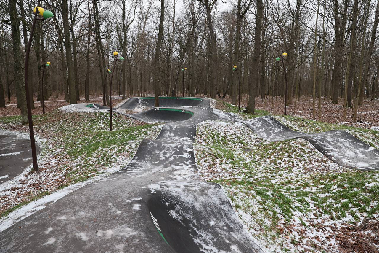Также обустроена спортивная зона с тренажерами, памп-трек, площадка для дрессировки и выгула собак, сцена, арт-объекты в лесной тематике. Размещены образовательные стоянки с информацией о растениях леса и его обитателях, новые кормушки для птиц и белок. Установлено современное освещение и видеонаблюдение.