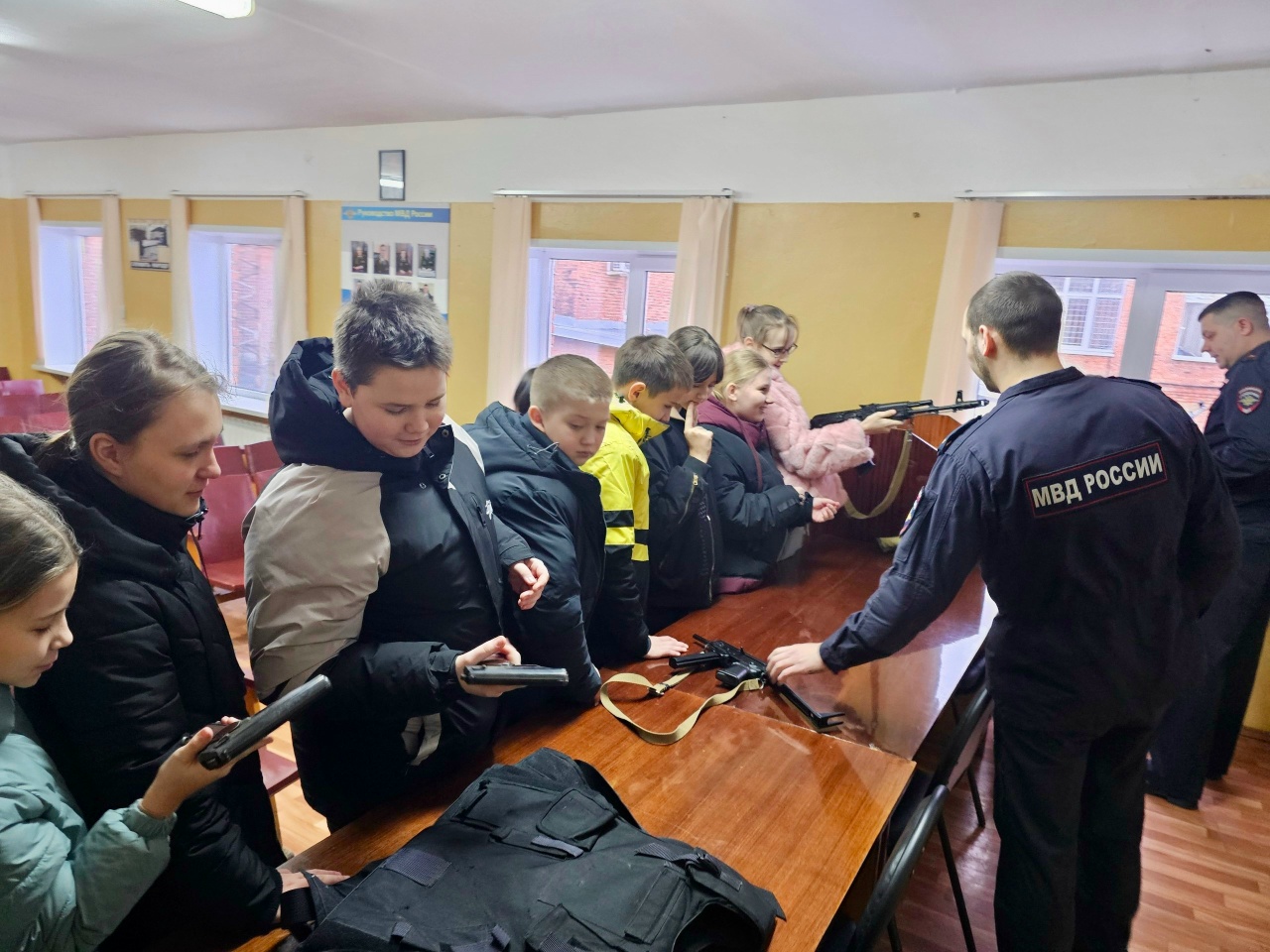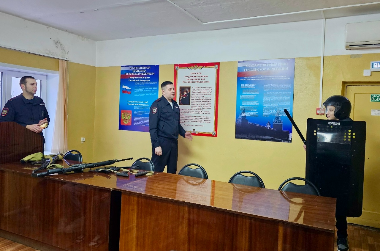 Школьники увидели, как принимается вызов, ознакомились с порядком и условиями содержания задержанных граждан, посетили комнату вооружения, разоружения и чистки оружия.