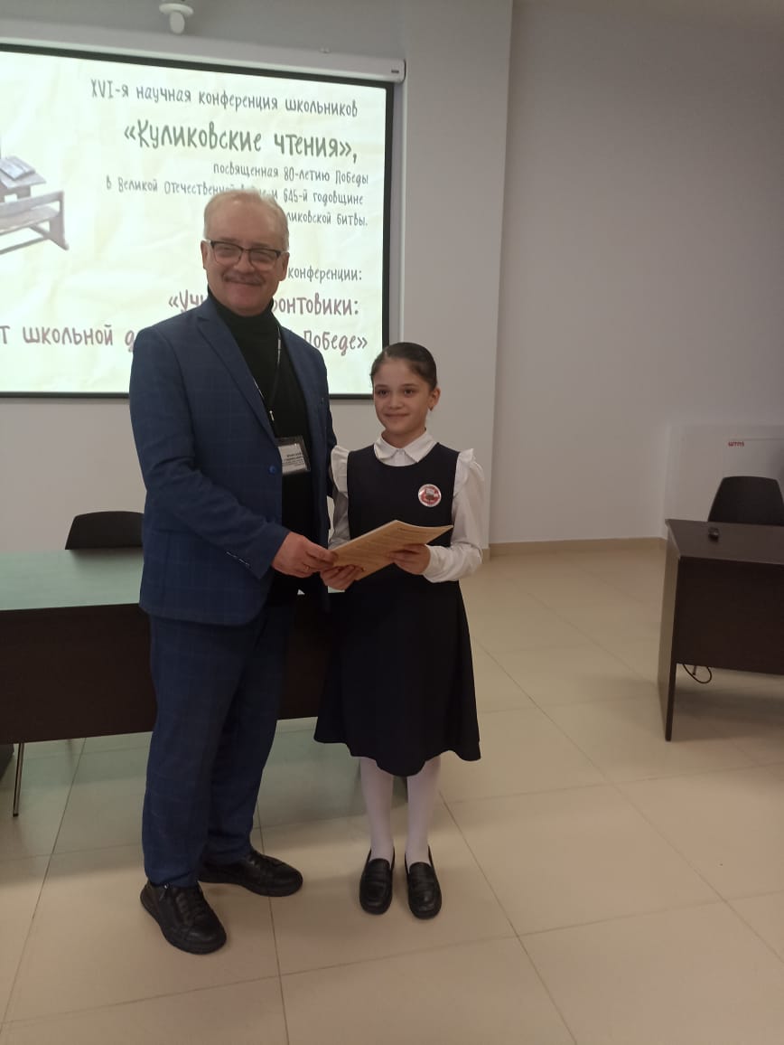 После подведения итогов конференции традиционно ее участники были награждены грамотами и книгами от музея-заповедника «Куликово поле». Заведующий Музейным комплексом «Куликово поле», доктор исторических наук, профессор Олег Вронский выделил четверых юных краеведов, подарив им свои новые книги. В их числе оказалась кимовчанка Малика Исматзода, как самая юная участница конференции.