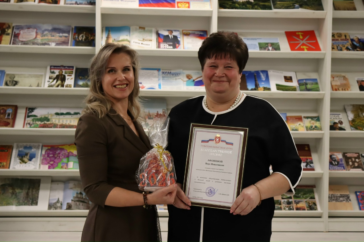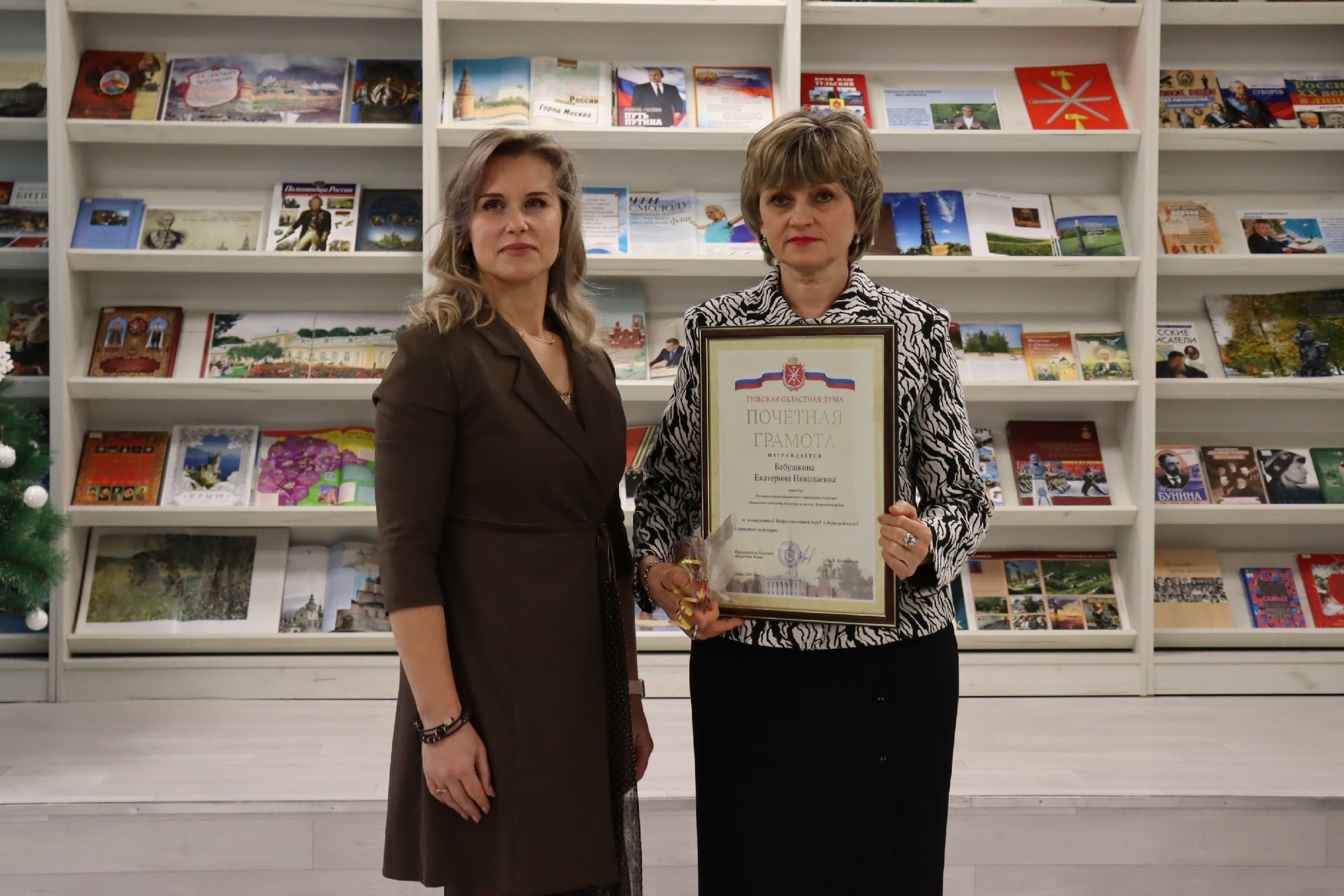За многолетний добросовестный труд и большой вклад в развитие муниципального образования и культуры почетные грамоты Тульской областной Думы были вручены главе администрации МО Новольвовское Галине Винокуровой и директору МБУК «Новольвовский центр культуры и досуга» Екатерине Бабушкиной.