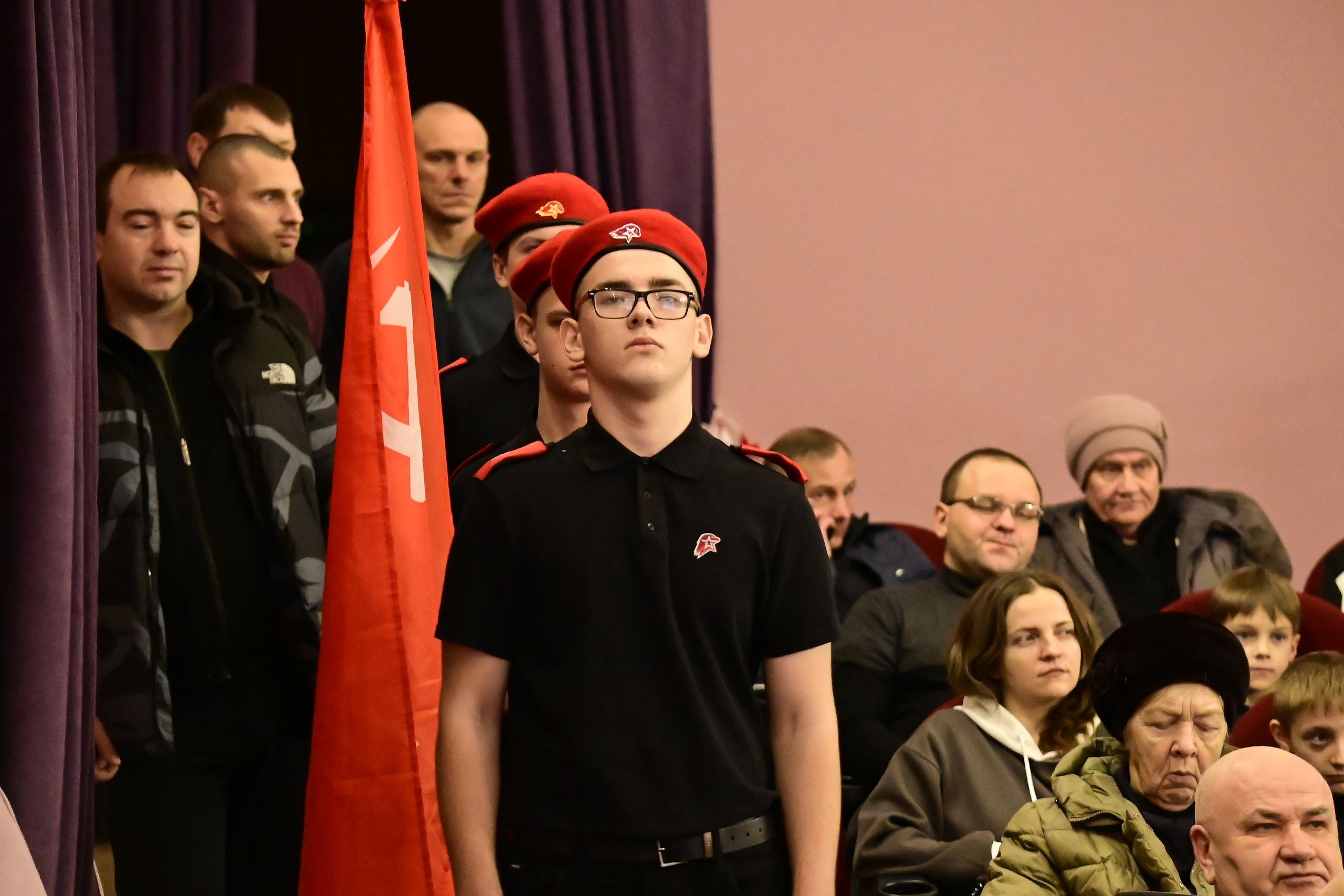 Символично, что эта часть церемонии сопровождалась выносом копии знамени Победы, объявлением минуты молчания в память о павших защитниках Отечества и чествованием ветерана СВО, кавалера ордена Мужества Дмитрия Кувшинова.
