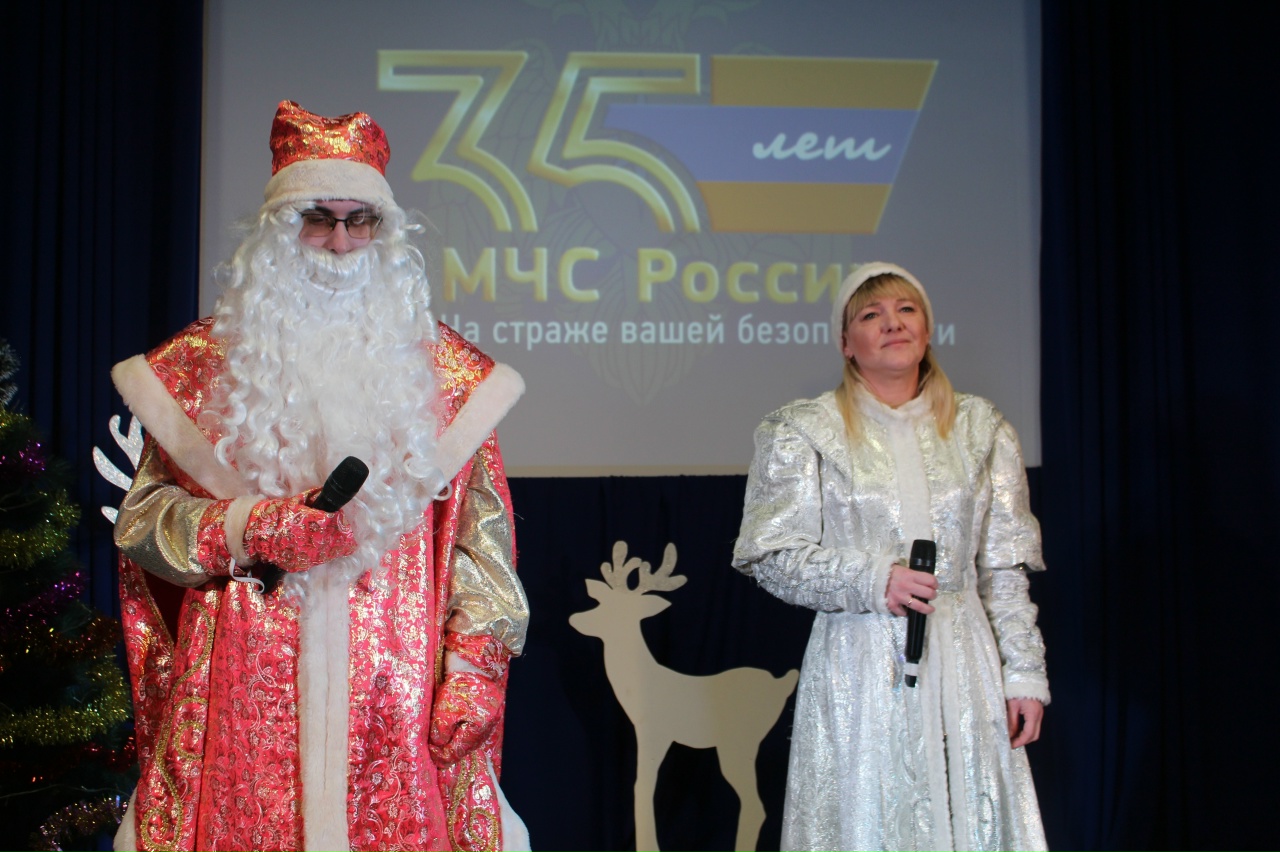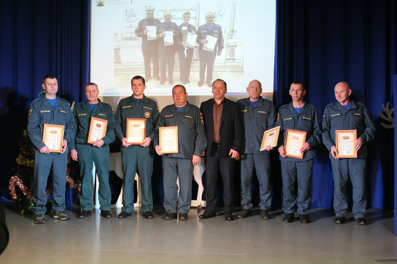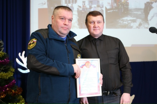 Награды главного управления МЧС России вручил начальник Кимовского пожарно-спасательного гарнизона Андрей Ширков. Создать праздничное настроение помогли солисты Передвижного Центра культуры и досуга и поздравление Деда Мороза и Снегурочки.