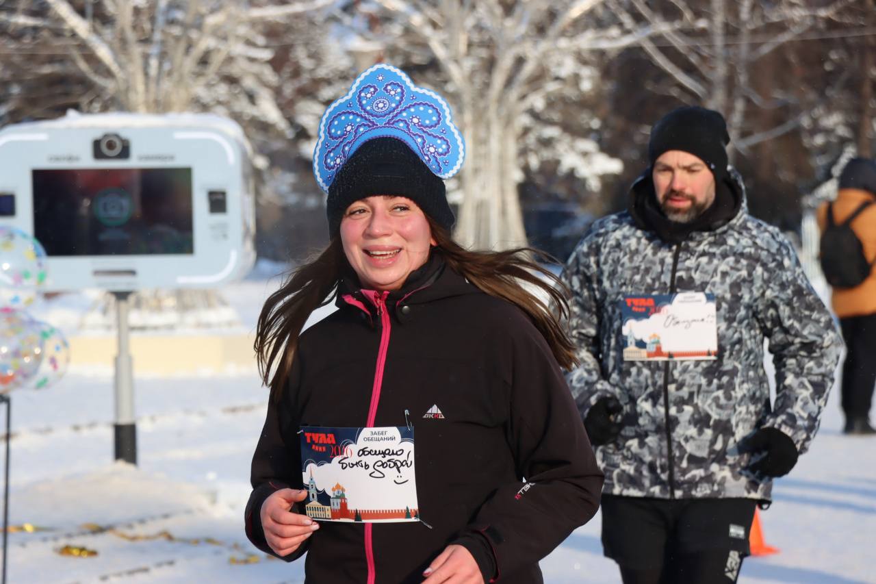 В забеге принял участие заместитель министра спорта Тульской области Андрей Благодаров. Он поздравил любителей активного образа жизни с Новым годом и пожелал всем крепкого здоровья и удачных стартов.
