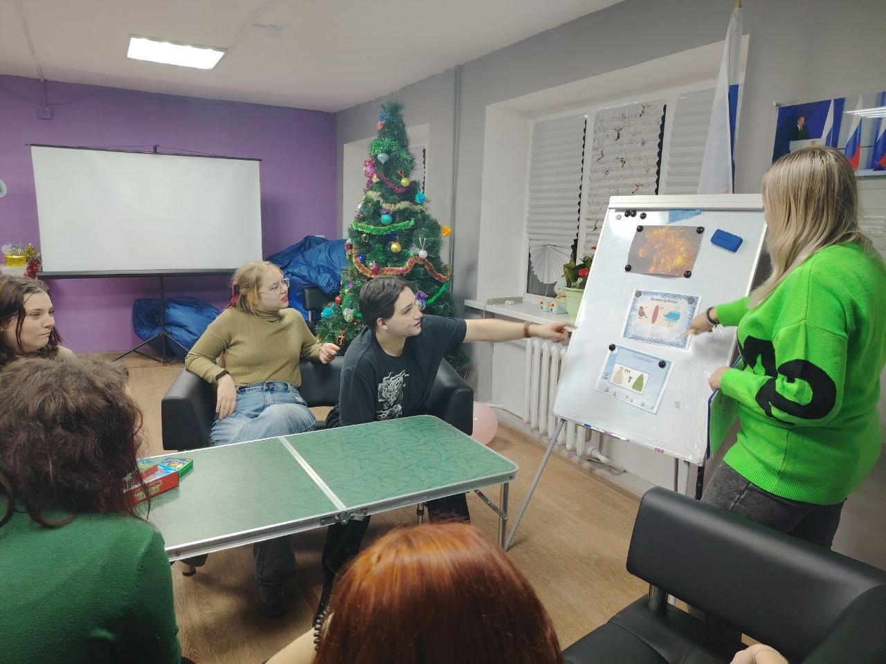 Ребята погрузились в атмосферу праздника через разнообразные задания. Им предстояло сразиться в тематических настольных играх, разгадать хитроумные ребусы, вспомнить и объяснить новогодние пословицы и ответить на каверзные загадки о зимнем празднике.