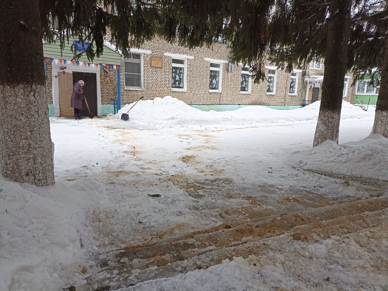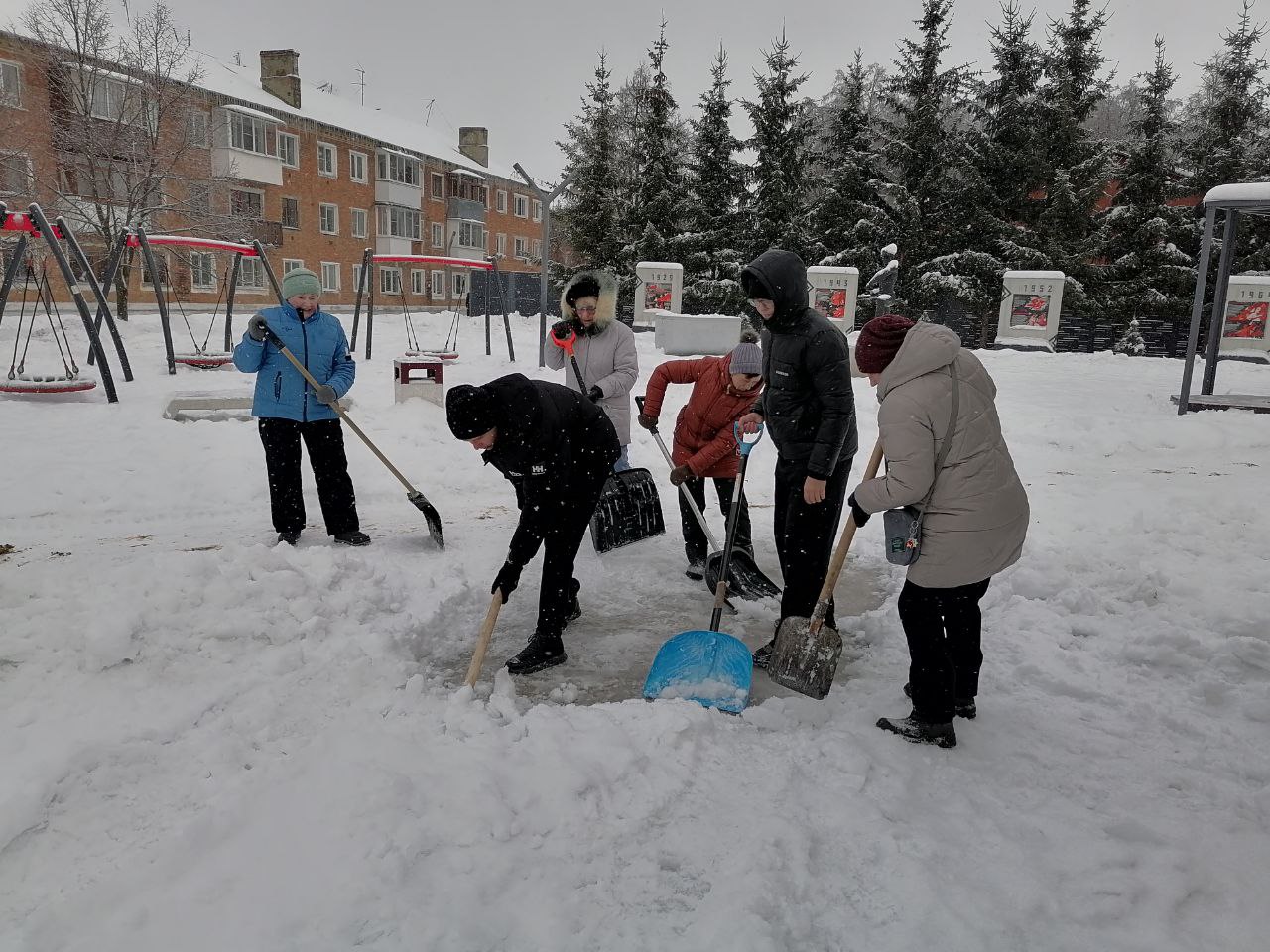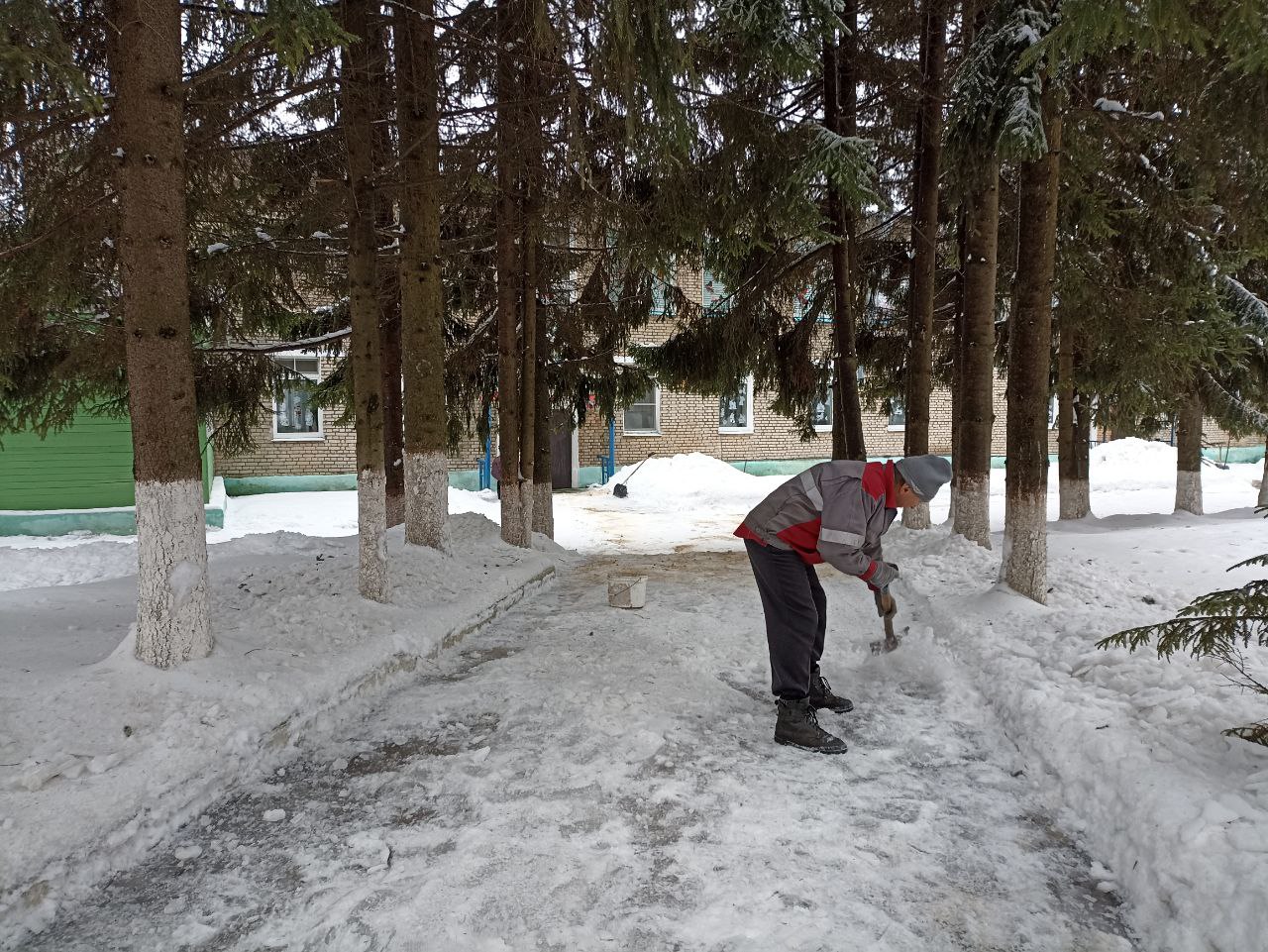 Большая бригада неравнодушных кимовчан вместе с Евгением Валентиновичем работала на территории КИМ, где были расчищены дорожки и подходы к игровым объектам.