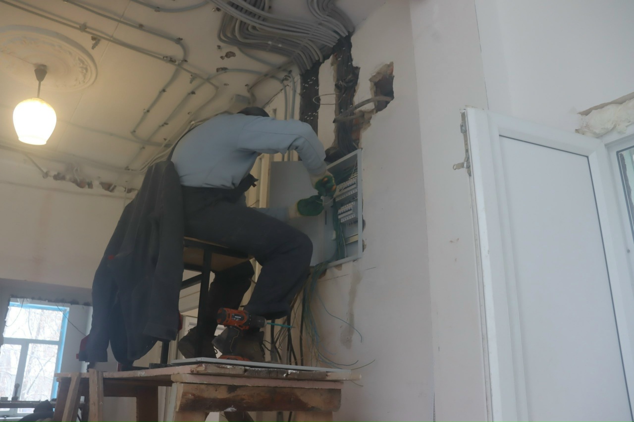 По информации районной администрации. подрядчик приступил к выполнению второго этапа работ, включающего в себя замену напольного покрытия и дверей, отделку внутренних помещений и другие работы.