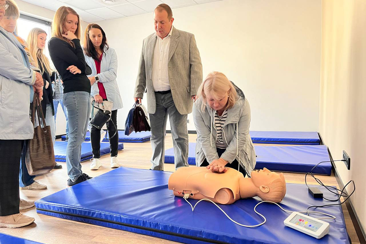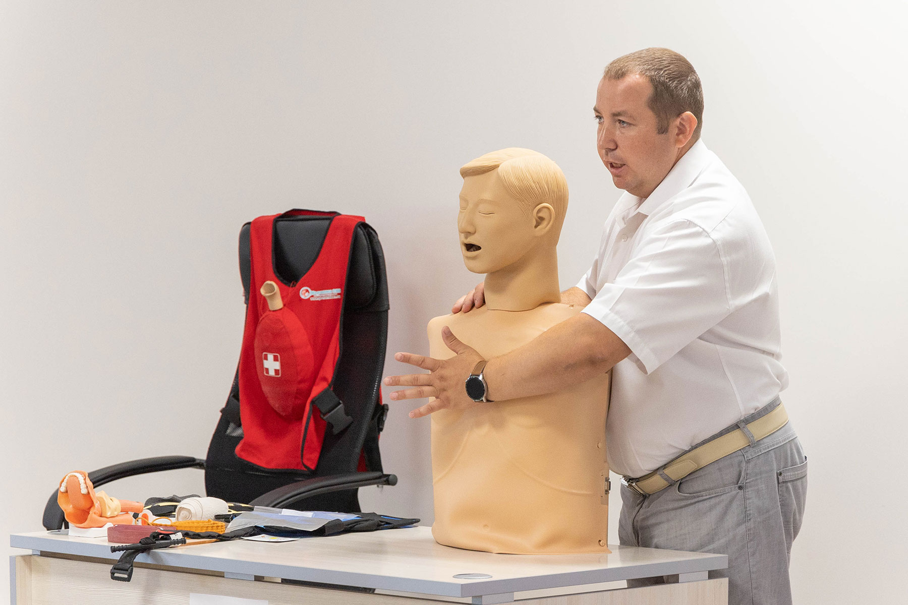 Обновлен учебный инвентарь для отработки практических навыков оказания первой помощи. Приобретены манекены для проведения сердечно-легочной реанимации, тренажеры для отработки навыков удаления инородного тела из верхних дыхательных путей.